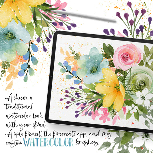 These custom Procreate brushes are the ones I use every day to create the loose, natural watercolor look you see in my work.