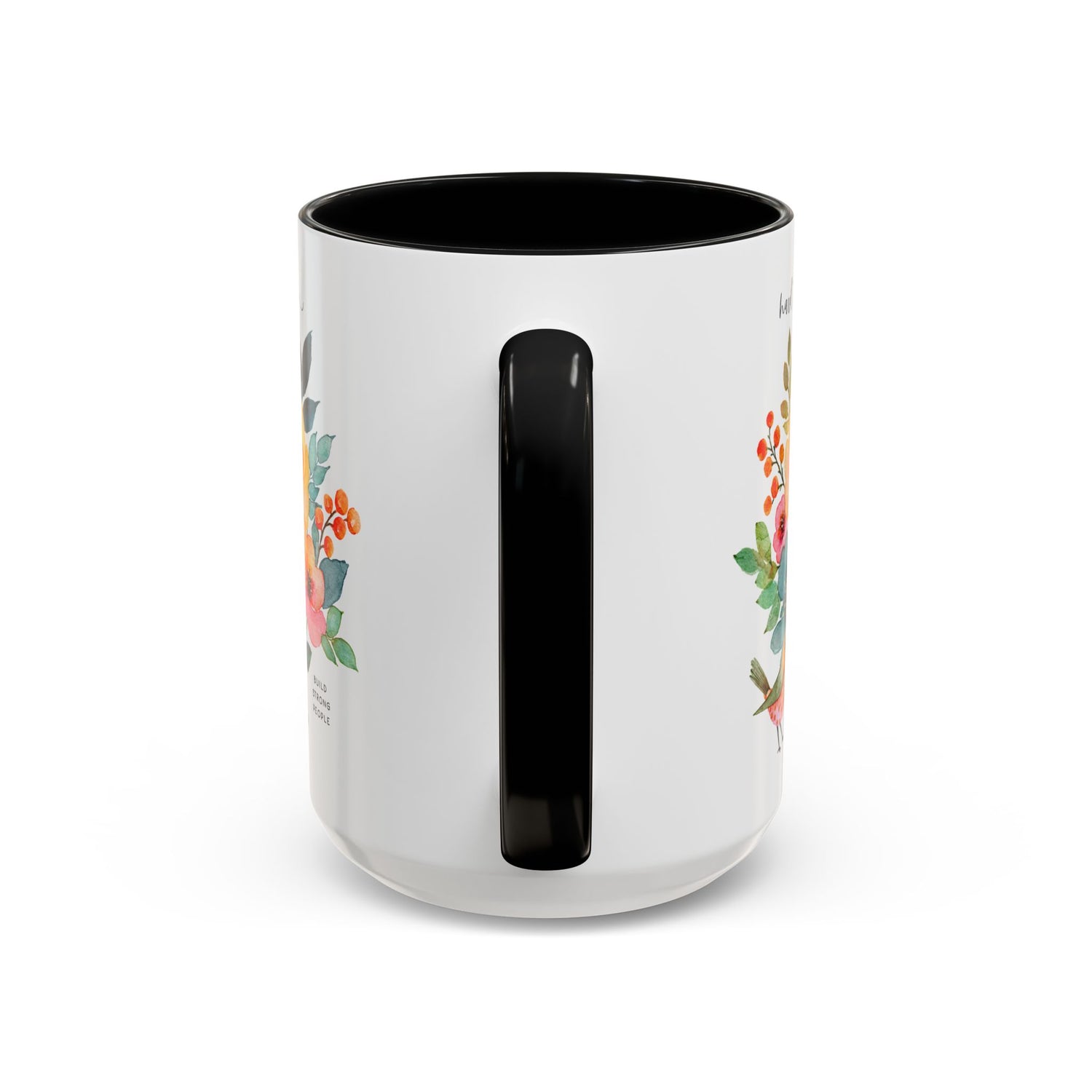 Motivational Coffee Mug – “Hard Things Build Strong People” with Flowers & Bird, Positive Gift for Her - 15oz / Black is backordered and will ship as soon as it is back in stock.
